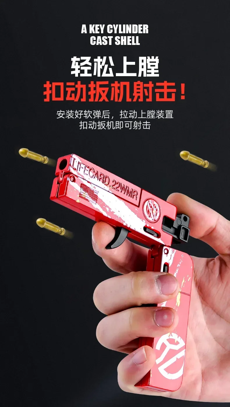 1-3pcs 2.0 Upgraded Lifecard Alloy Folding Gun Toy Soft Bullet Blaster Shooting Model Pistol For Adults Kids Christmas Gifts