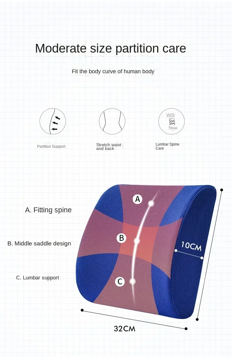 Car Cushion Relieves Low Back Pain Breathable Lumbar PillowOffice Seat Lumbar Support Memory Sponge Lumbar Cushion Slow Rebound