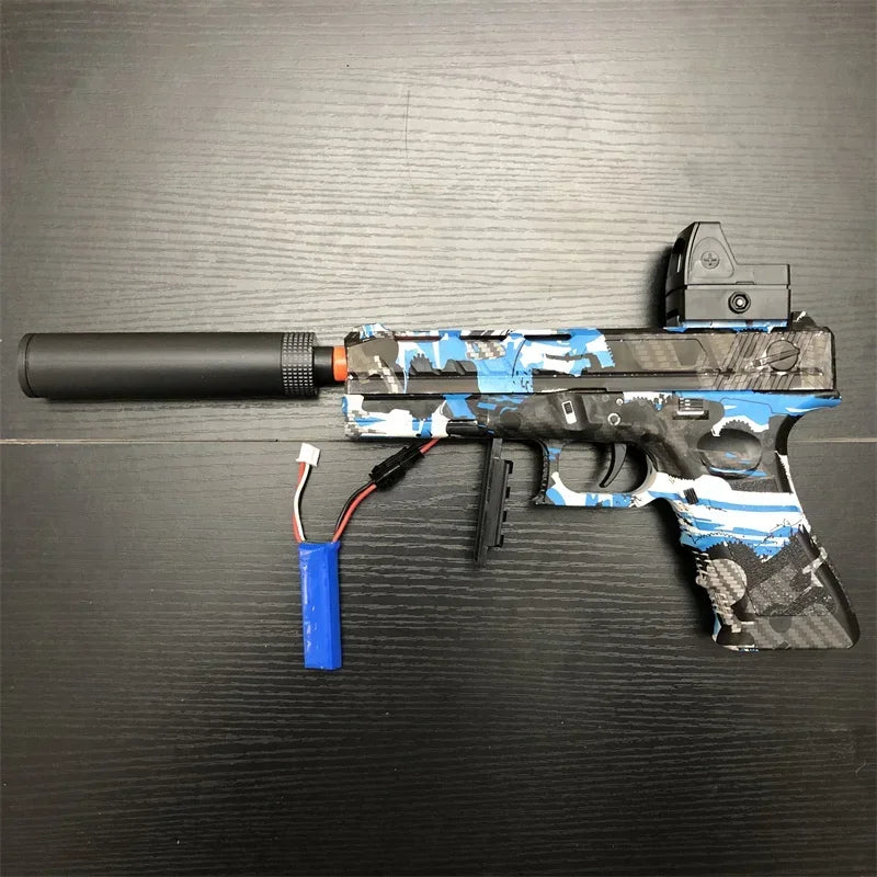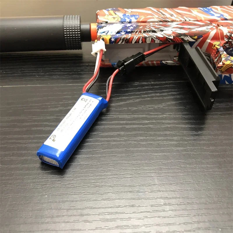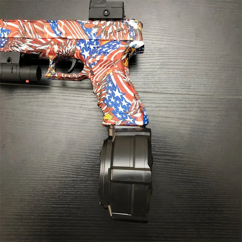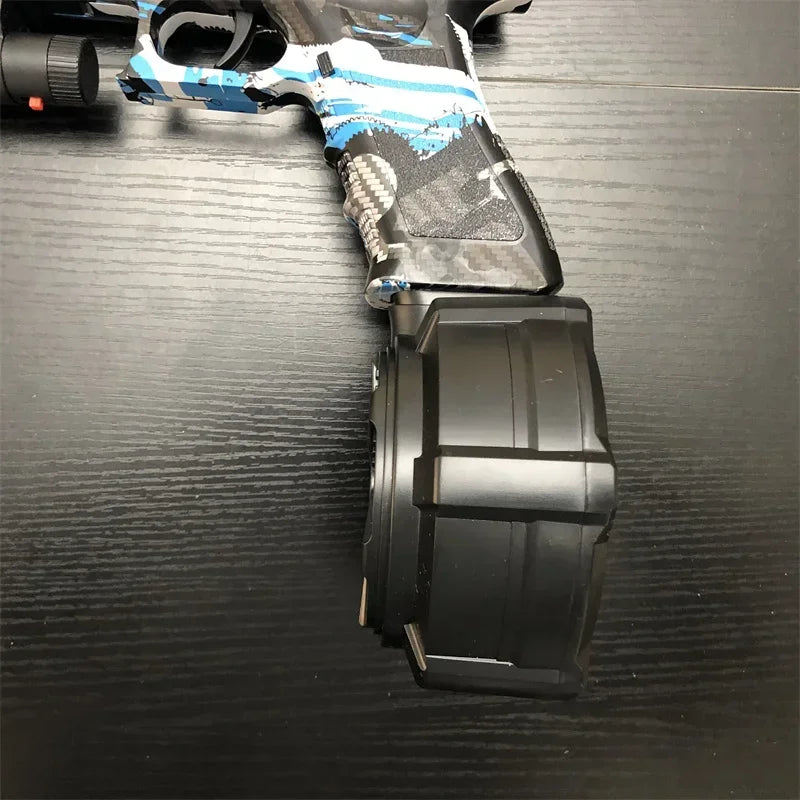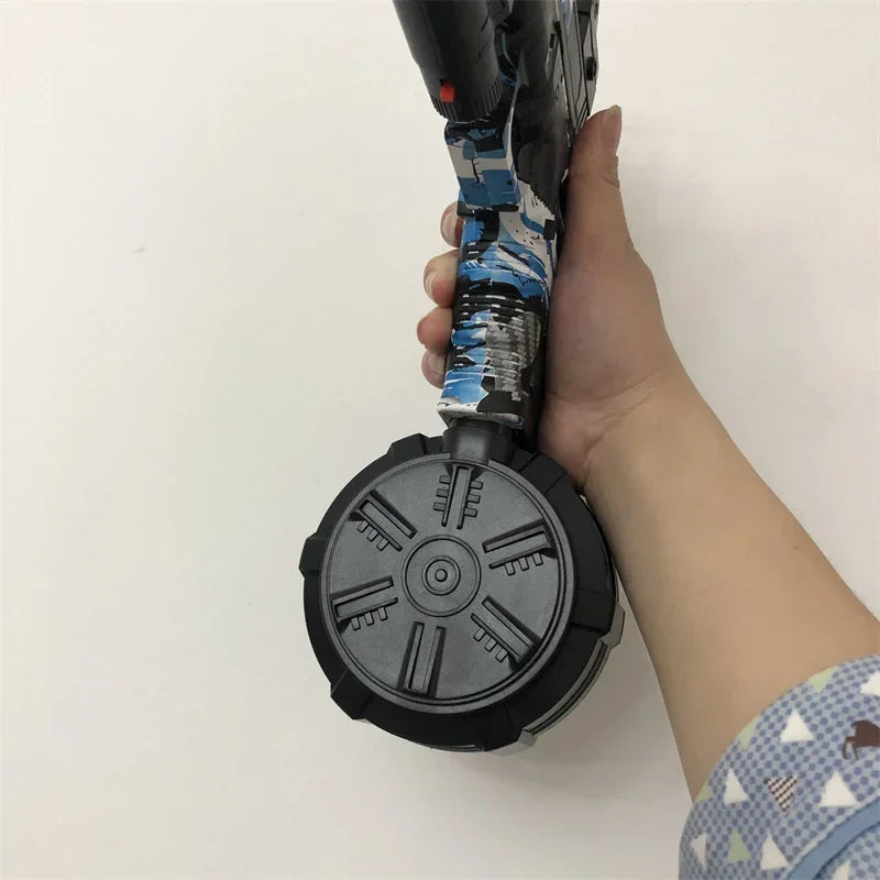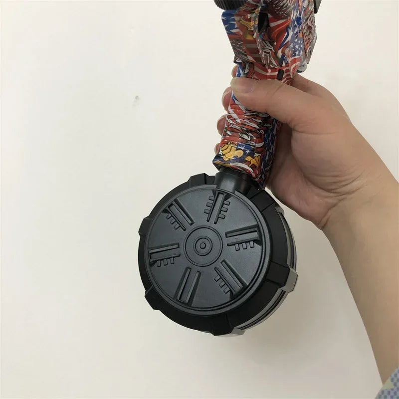[Attention 1]: 1. Do not let water enter the hopper when loading water beads. Please wear protective safety goggles (included) before use, use 7-8mm water beads 2. Water beads should be soaked for more than 4 hours before use, until the size reached 6-7mm. 3. If not play the gel ball blaster for more than 2 hours, please pour out the water beads from the bottle to prevent the water from evaporating and affecting the size of the water beads.