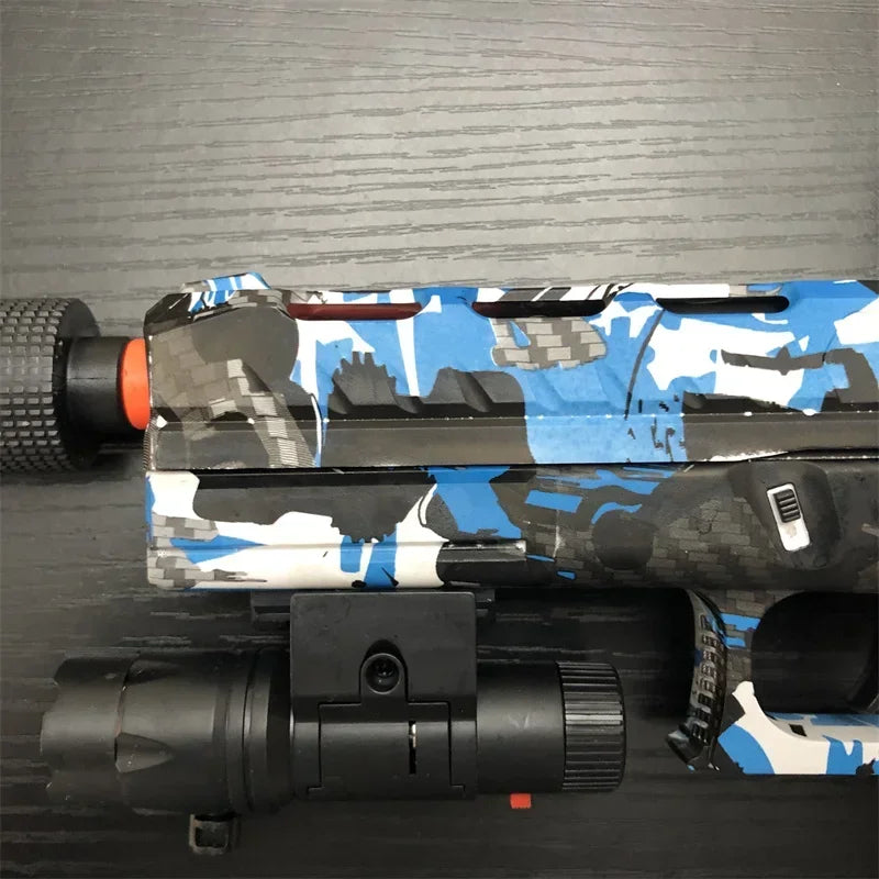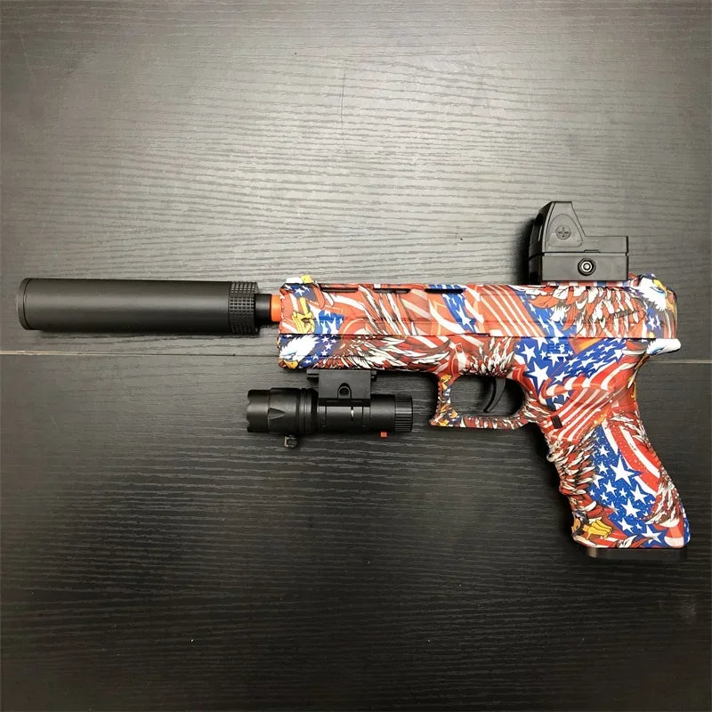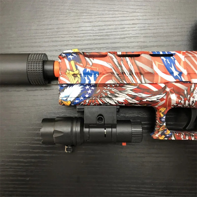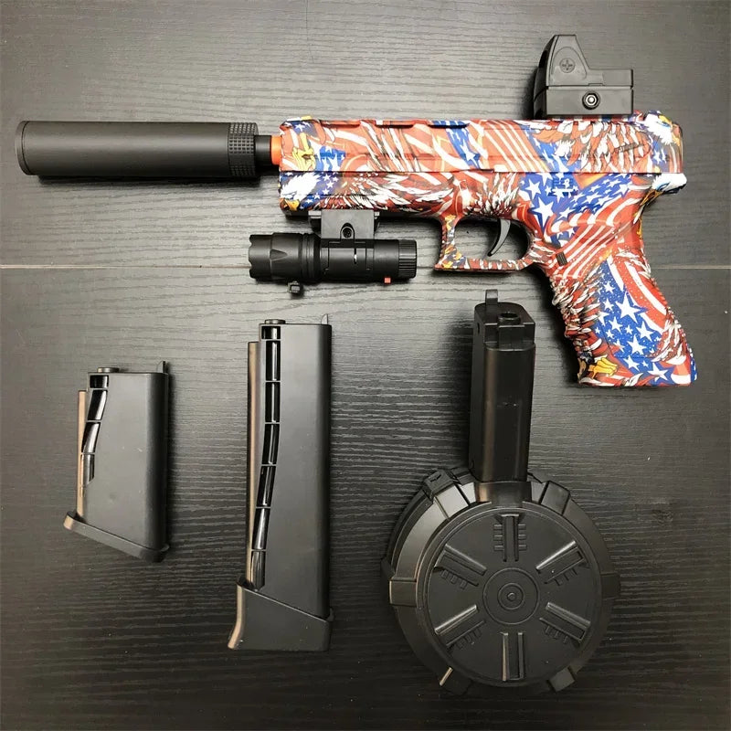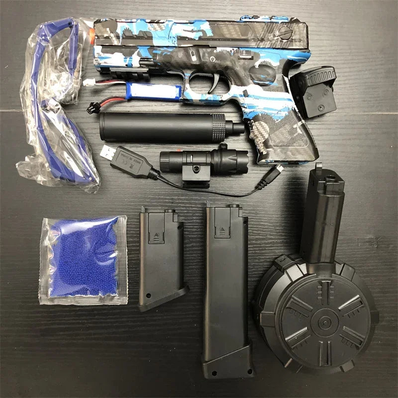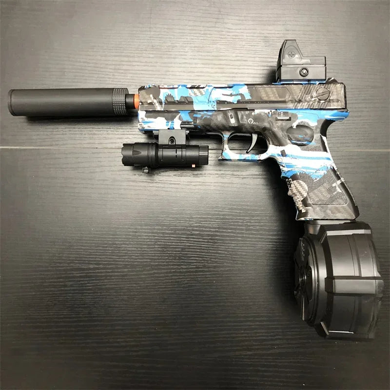 [Attention 1]: 1. Do not let water enter the hopper when loading water beads. Please wear protective safety goggles (included) before use, use 7-8mm water beads 2. Water beads should be soaked for more than 4 hours before use, until the size reached 6-7mm. 3. If not play the gel ball blaster for more than 2 hours, please pour out the water beads from the bottle to prevent the water from evaporating and affecting the size of the water beads.